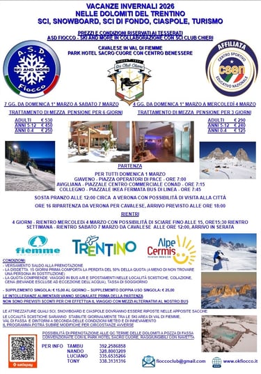 Home | Skipass Scontati | Contatti | Tesseramenti | Prenotazioni Gite | Info Pagamenti | Trentino 2026 | Statuto | Staff Tecnico | CSEN